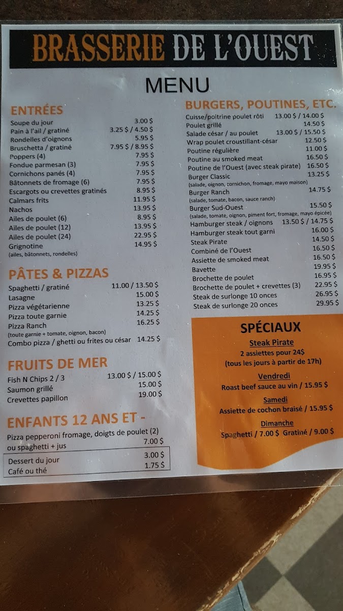 Welcome to Brasserie de l'Ouest, a culinary gem nestled in Saint-Jean-sur-Richelieu, Canada. This charming brasserie is renowned for its vibrant atmosphere and consistently high-quality fare. Patrons have praised the restaurant for its fresh ingredients, particularly the homemade fries and expertly cooked steaks.